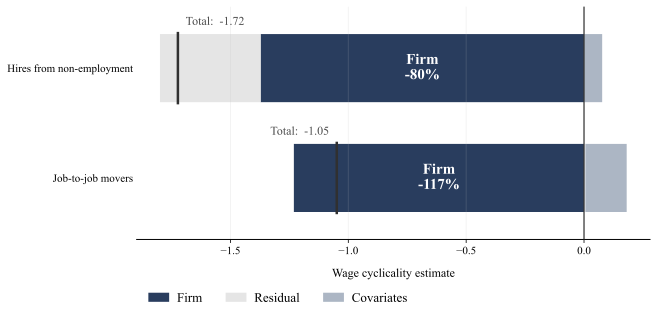 Description: This project studies the wage cyclicality of new hires using a long panel of linked employer–employee data from Austria. Using AKM decompositions, we show that the strong procyclicality of entry wages for job to job movers and hires from non employment is primarily driven by cyclical worker reallocation across firms rather than wage flexibility. Once composition and selection effects are removed, the cyclicality of new hire wages is modest. We further link the micro level wage regressions to aggregate reallocation dynamics, clarifying their connection to cleansing and sullying effects.